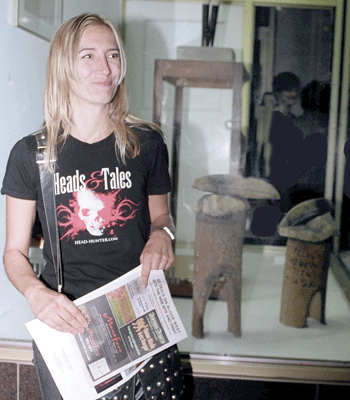 Caught on camera by paparazzi Tatjana Hutinec and her wearable art headpiece “The Garden of Eden”